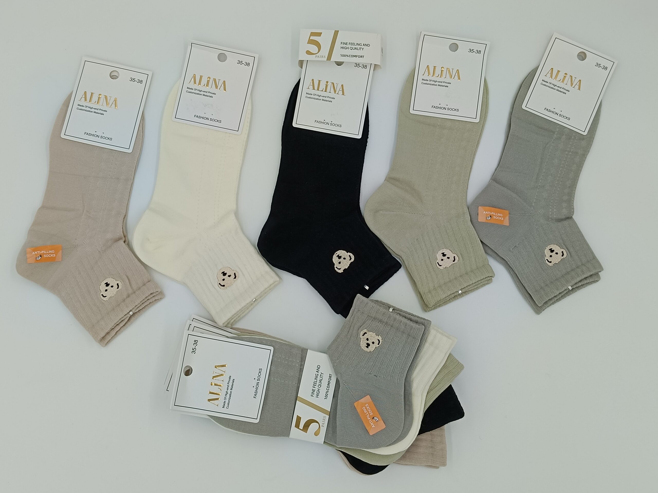 - Praktyczny zestaw: Kupując jeden zestaw, otrzymujesz aż 5 par skarpetek, co pozwoli Ci cieszyć się komfortem przez cały tydzień.
